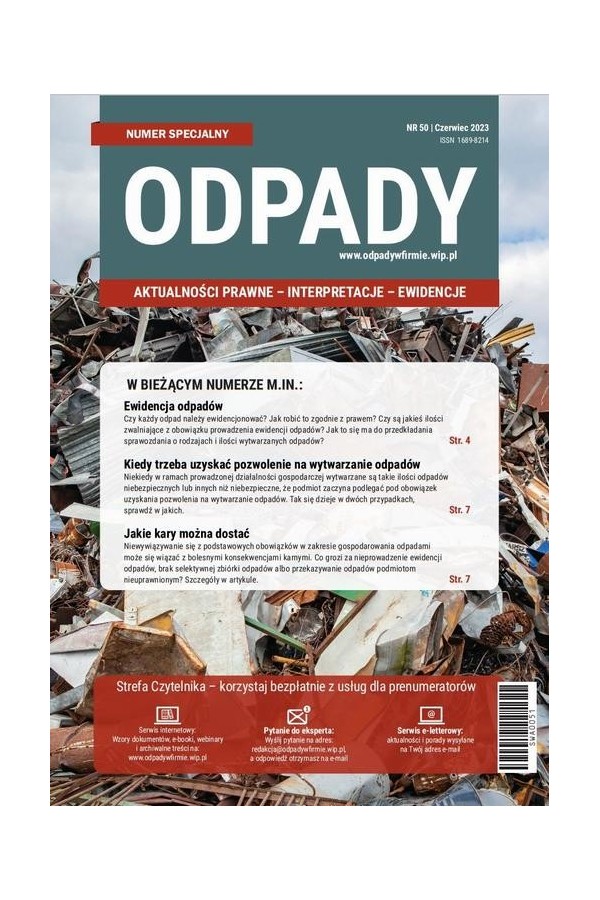 W tym wydaniu specjalnym omawiamy temat systemu recyklingu pojazdów wycofanych z eksploatacji. Tłumaczymy definicje i wymagania prawne w tym zakresie. Szerokie opracowanie zawiera informacje o celach i założeniach systemu oraz zasadach jego funkcjonowania. Omówiona została odpowiedzialność karna oraz obowiązki w zakresie ewidencji i sprawozdawczości w BDO. Serdecznie zapraszam do zapoznania się z tym materiałem, ponieważ odpady pochodzące z pojazdów wycofanych z eksploatacji odgrywają dużą rolę na rynku odpadowym.