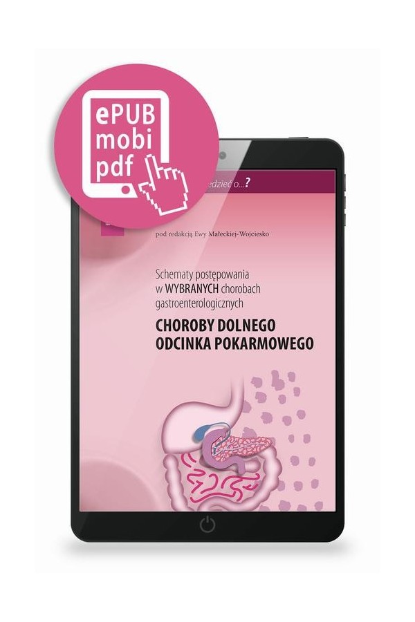 Książka Schematy postępowania w wybranych chorobach gastroenterologicznych choroby dolnego odcinka pokarmowego pod redakcją prof. dr hab. n. med. Ewy Małeckiej-Wojciesko została opracowana przez wybitnych ekspertów z zakresu gastroenterologii. Porusza tematykę nieswoistych chorób zapalnych jelit, zespołu rozrostu bakteryjnego jelita cienkiego, autoimmunologicznego zapalenia trzustki, przewlekłego zapalenia trzustki, choroby uchyłkowej jelita grubego oraz celiakii. Jest to doskonałe, oparte na najnowszych źródłach opracowanie obejmujące patogenezę, epidemiologię oraz zasady diagnostyki, różnicowania i terapii wspomnianych chorób. Należy podkreślić, że monografia zawiera znakomite ryciny, schematy oraz algorytmy postępowania, które są szczególnie pomocne w praktyce klinicznej. Z tego dzieła korzystać będą zarówno gastroenterolodzy, jak i lekarze innych specjalności, do których trafiają pacjenci z chorobami gastroenterologicznymi.