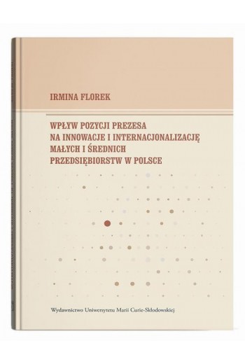 Prezentowana publikacja dotyczy wpływu pozycji prezesa na innowacyjność i internacjonalizację przedsiębiorstw z sektora MSP w Polsce. Głównym problemem badawczym jest stwierdzenie, czy silniejsza pozycja osoby zarządzającej (prezesa) przekłada się na większy stopień innowacyjności i internacjonalizacji oraz lepszą sytuację finansową przedsiębiorstwa. Przedmiot badań stanowią przedsiębiorstwa MSP notowane na alternatywnym rynku GPW (NewConnect). Zakres czasowy publikacji obejmuje lata 2018–2021 oraz dodatkowo uwzględnia wpływ kryzysu na badane zmienne. Z recenzji dr hab. Joanny Błach, prof. UE