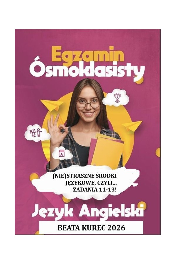 (NIE)STRASZNE ŚRODKI JĘZYKOWE, czyli zadania 11-13! Ten materiał to praktyczny trening środków językowych w formacie dokładnie takim, z jakim uczniowie spotykają się na egzaminie ósmoklasisty (zadania 11–13). Ebook zawiera 15 zestawów egzaminacyjnych. Każdy zestaw obejmuje: TASK 1/TASK2/TASK 3 -zadanie wielokrotnego wyboru (jak na egzaminie), -transformacje zdań z limitem wyrazów - tłumaczenie fragmentów zdań -klucz odpowiedzi, idealny do pracy w klasie i samokontroli ucznia.