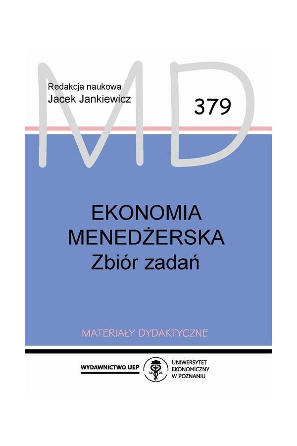 Ekonomia menedżerska jest dziedziną skupiającą się na analizie różnorodnych decyzji podejmowanych przez osoby, które gospodarują ograniczonymi zasobami i często zajmują stanowiska kierownicze. Mówimy więc między innymi o procesie zarządzania, w tym optymalizacji działań i podejmowaniu strategicznych decyzji. Dylematy, z jakimi zmagają się menedżerowie, i decyzje, które muszą podejmować, wyjaśniane są w takim podejściu za pomocą koncepcji i narzędzi stosowanych przez ekonomistów. Można więc powiedzieć, że ekonomia menedżerska kładzie nacisk na połączenie praktyki podejmowania decyzji gospodarczych z teorią ekonomii. Opracowany materiał uporządkowano tematycznie, w ostatnim rozdziale zamieszczono rozwiązania zdecydowanej większości zadań. Publikacja, którą oddajemy do Państwa rąk, została przygotowana przede wszystkim z myślą o studentach studiów stacjonarnych i niestacjonarnych drugiego stopnia. Wiele zawartych tu zagadnień może być jak najbardziej przydatna także dla studentek i studentów zgłębiających teorię mikroekonomii na studiach pierwszego stopnia. Nie wykluczamy również, że poszczególne wątki i zagadnienia mogą być interesujące dla osób poszerzających swoją wiedzę w trakcie studiów podyplomowych, szczególnie tych, które dotyczą elementów zarządzania przedsiębiorstwem.