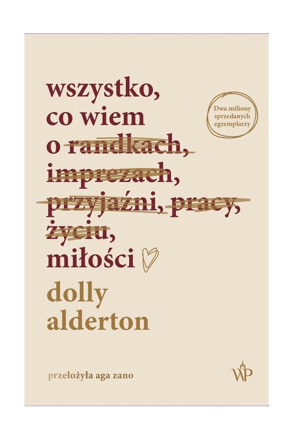 Bestseller, który podbił serca czytelniczek na całym świecie. Dwa miliony sprzedanych egzemplarzy. Nowe, rozszerzone wydanie najważniejszej książki Dolly Alderton znów w Polsce! „Wszystko, co wiem o miłości”, literacki fenomen przełożony na 20 języków, to pasjonująca opowieść o najgorszych randkach, najlepszych przyjaźniach i najważniejszych lekcjach, których udziela nam życie. Bo czy da się przejść przez swoje lata dwudzieste i trzydzieste bez potknięcia? Raczej nie. Najważniejsze, żeby mieć miękkie lądowanie w ramionach ludzi, którzy nas kochają. I właśnie o tym jest ta książka. Nie ma drugiej takiej autorki jak ona. Lisa Taddeo, autorka powieści „Zwierzę” i „Trzy kobiety” Myślałam, że dużo wiem o miłości. Jednak nie tak dużo, jak Dolly. Przeczytajcie to ASAP. Sharon Horgan, aktorka Przepięknie napisana, pełna przygód, mądra i ważna książka, trafiająca do kobiet w każdym wieku. Ja ją pokochałam. Elizabeth Gilbert, autorka „Jedz, módl się, kochaj” To opowieść, która jest w stanie uleczyć złamane serce. „Evening Standard” Idealny prezent dla każdej kobiety, którą masz zaszczyt nazywać swoją przyjaciółką. „Irish Times”