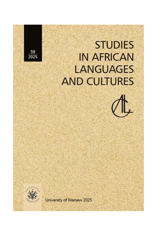 The issue brings together studies in sociolinguistics, linguistics, cultural anthropology, history, and literary analysis. Sociolinguistic perspectives include examinations of the cultural logic of Akan proverbs about lying, the changing status of Igbo personal names under the influence of English, and euphemistic expressions surrounding death in Ewe. Linguistic analyses address vowel and tone processes in Ife (Togo), verb extensions in Ndendeule, and questions of literacy development in indigenous languages across francophone West Africa. Historical and anthropological contributions explore early Islamic traditions in Ethiopia through recent fieldwork in Negash, as well as contemporary attitudes toward Zulu indigenous rituals among history education students. Literary studies highlight the role of oral Afrocentric storytelling among the Luo of Kenya and trace the evolving symbolism of garden imagery in East African Anglophone literature. The publication is licensed under the Creative Commons Attribution-NonCommercial 4.0 (CC BY-NC 4.0) (full license available at: https://creativecommons.org/licenses/by-nc/4.0/). ********* W niniejszym numerze zebrano prace z zakresu socjolingwistyki, lingwistyki, antropologii kulturowej, historii oraz analizy literackiej. Perspektywy socjolingwistyczne obejmują analizę logiki kulturowej przysłowia ludu Akan dotyczących kłamstwa, zmieniający się status imion osobowych ludu Igbo pod wpływem języka angielskiego oraz eufemistyczne wyrażenia związane ze śmiercią w języku Ewe. Analizy lingwistyczne dotyczą procesów samogłoskowych i tonowych w języku Ife (Togo), rozszerzeń czasowników w języku Ndendeule oraz kwestii rozwoju umiejętności czytania i pisania w językach tubylczych w całej frankofońskiej Afryce Zachodniej. Wkład historyczny i antropologiczny dotyczy wczesnych tradycji islamskich w Etiopii na podstawie ostatnich badań terenowych w Negash, a także współczesnych postaw wobec rdzennych rytuałów Zulu wśród studentów historii. Studia literackie podkreślają rolę ustnego opowiadania historii o tematyce afrocentrycznej wśród plemienia Luo w Kenii oraz śledzą ewolucję symboliki obrazów ogrodowych w literaturze anglojęzycznej Afryki Wschodniej. Publikacja na licencji Creative Commons Uznanie autorstwa – Użycie niekomercyjne 4.0 (CC BY-NC 4.0) (pełna treść wzorca dostępna pod adresem: https://creativecommons.org/licenses/by-nc/4.0/pl/).